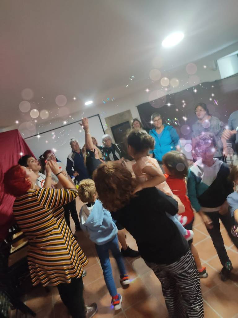 El sábado comenzó con nuestra musicoterapeuta, Susana Fernández, creando un taller lleno de músicas y risas para 28 personas con edades comprendidas entre los 3 y los 64 años. ¡Hizo gala de toda su maestría! Y tras ella, Felipe, director de Trokobloco dio un magistral taller de batucada con instrumentos reciclados, sacando el ritmo del cuerpo a todos los participantes para después sorprendernos con una fabulosa sesión que hizo vibrar a todo el pueblo.